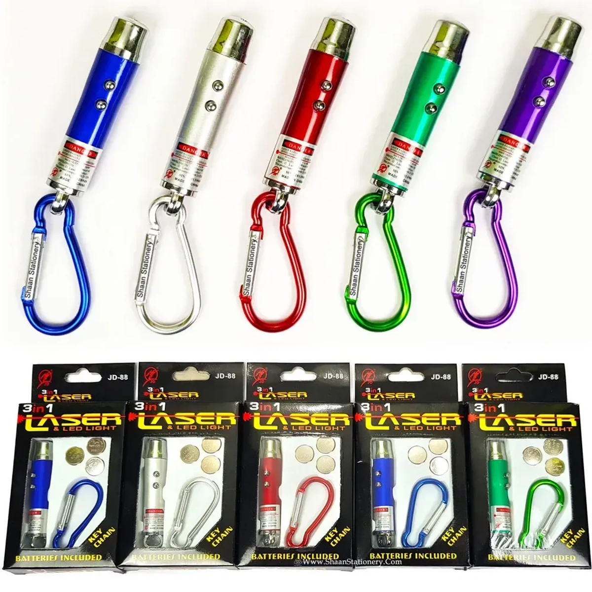 3-in-1 Laser Light Pointer, LED Torch & UV Light with Key Chain - (1 Piece)