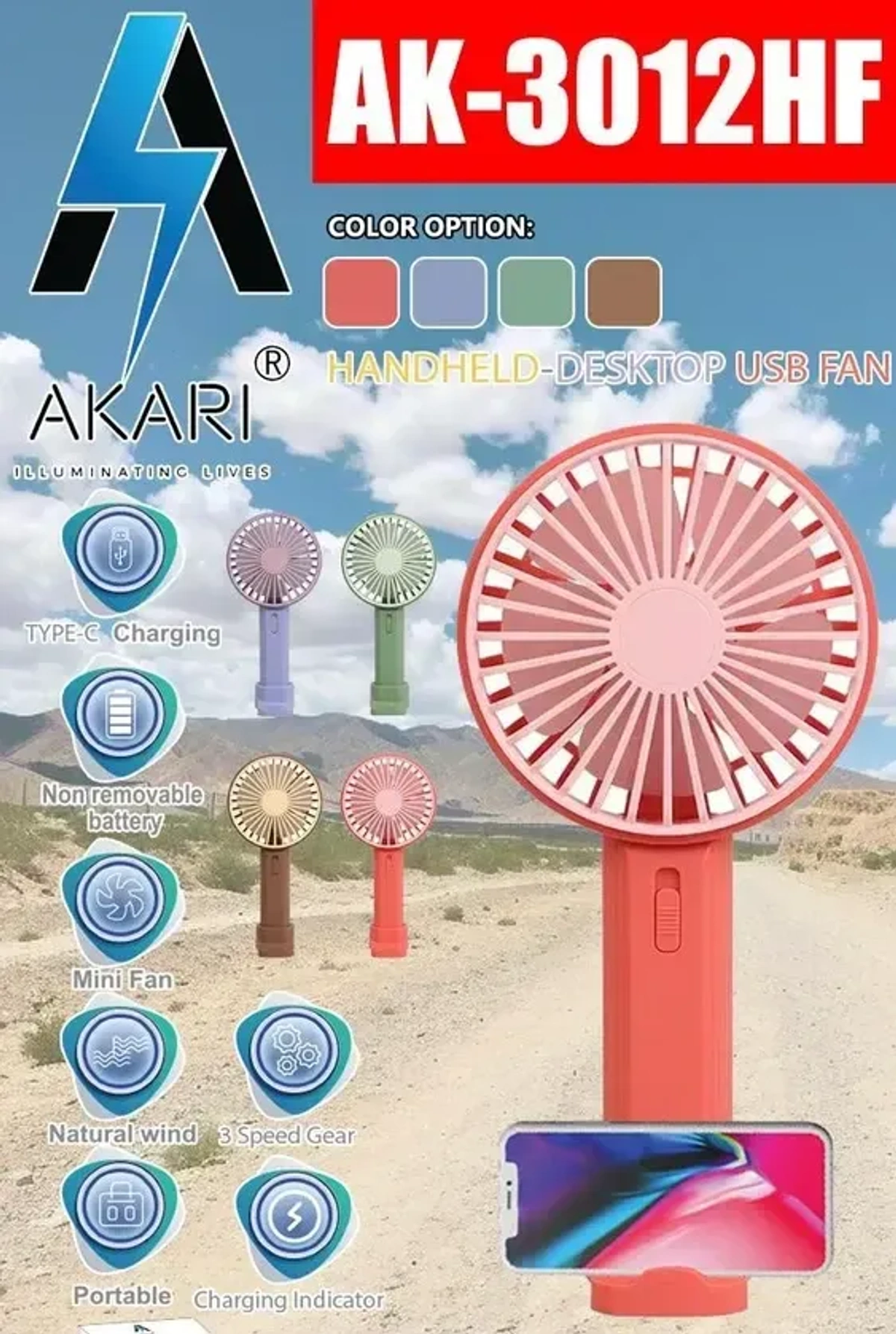 Portable Mini Fan – Rechargeable Handheld Fan with Stand 9 ( Multi Color) - (1 Piece)